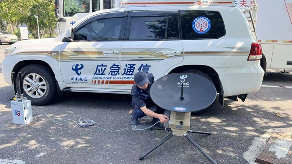 精準(zhǔn)規(guī)劃、科學(xué)調(diào)配,夯實(shí)應(yīng)急通信基礎(chǔ)保障。除全網(wǎng)通基站外,中電信應(yīng)急通信有限公司還投入多型應(yīng)急通信裝備,形成“空天地一體”應(yīng)急通信保障網(wǎng)絡(luò)。結(jié)合年會(huì)現(xiàn)場(chǎng)實(shí)際需求,保障團(tuán)隊(duì)在東嶼島核心區(qū)域內(nèi)部署了2輛大型應(yīng)急通信車、2輛小型衛(wèi)星應(yīng)急通信車、衛(wèi)星背包式基站、天通衛(wèi)星電話,以應(yīng)對(duì)網(wǎng)絡(luò)中斷的極端事件,確保區(qū)域通信不失聯(lián)。其中,衛(wèi)星背包式基站可在5分鐘內(nèi)完成搭建,與衛(wèi)星的寬帶連接,替代傳統(tǒng)地面線路,實(shí)現(xiàn)高速數(shù)據(jù)傳輸,即便在無網(wǎng)絡(luò)環(huán)境下也能保障音視頻、數(shù)據(jù)的穩(wěn)定回傳。