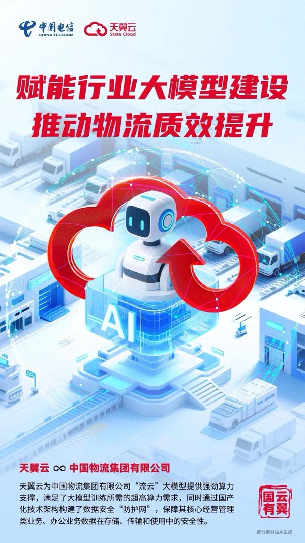 中國物流集團有限公司(以下簡稱“中國物流”)是國務院國資委直接監(jiān)管的股權(quán)多元化國有全資中央企業(yè),致力于打造“成為具有全球競爭力的世界一流綜合性現(xiàn)代物流企業(yè)集團”。作為物流行業(yè)的“國家隊”,中國物流積極把握人工智能發(fā)展方向,與中國電信等合作伙伴共同研發(fā)、上線2780億參數(shù)“流云”大模型,有力推動了物流行業(yè)數(shù)智化升級與“人工智能+”生態(tài)發(fā)展,為降低全社會物流成本提供了強有力的技術(shù)支撐。天翼云作為云服務國家隊,為“流云”大模型提供了強勁算力支撐,不僅助力中國物流成功實現(xiàn)數(shù)字化轉(zhuǎn)型,也為整個物流行業(yè)智能化發(fā)展樹立了央企新標桿。