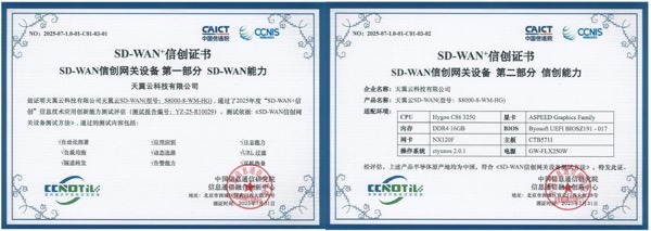 近日,天翼云科技有限公司“天翼云SD-WAN”順利通過中國信息通信研究院(以下簡稱“中國信通院”)“SD-WAN?信創(chuàng)”項目評估,在“SD-WAN+信創(chuàng)基準(zhǔn)解決方案”“SD-WAN信創(chuàng)控制器”及“SD-WAN信創(chuàng)網(wǎng)關(guān)設(shè)備”三大核心模塊的評估中表現(xiàn)優(yōu)異,成為國內(nèi)首批通過該系列認證的云服務(wù)商。這標(biāo)志著天翼云在SD-WAN信創(chuàng)領(lǐng)域的技術(shù)成熟度、安全可靠性及專業(yè)能力獲得了行業(yè)權(quán)威認可,為構(gòu)建自主可控、安全可靠的數(shù)字基礎(chǔ)設(shè)施提供了堅實支撐。