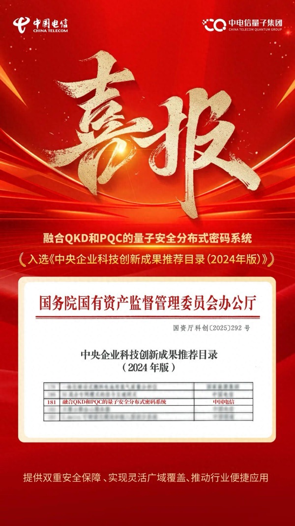 近日,國(guó)務(wù)院國(guó)資委正式發(fā)布《中央企業(yè)科技創(chuàng)新成果推薦目錄(2024年版)》,中國(guó)電信自主研發(fā)的“融合QKD和PQC的量子安全分布式密碼系統(tǒng)”成功入選,充分認(rèn)可了中國(guó)電信在量子科技領(lǐng)域的前瞻性戰(zhàn)略布局和自主核心技術(shù)攻關(guān)的創(chuàng)新能力。