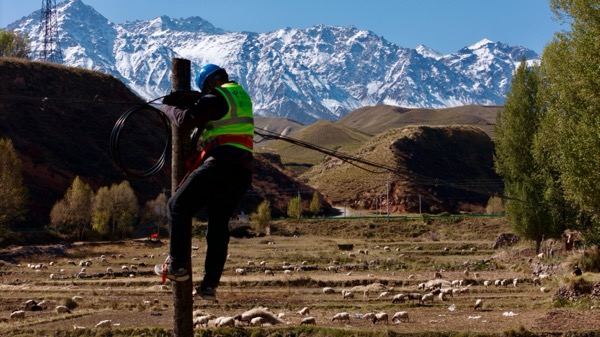 深秋時節(jié),祁連山麓的民樂縣永固鎮(zhèn)姚寨村已披上金裝。在這片黃綠交織的草原與巍峨雪山的映襯下,一群身著熒光色工裝的“通信衛(wèi)士”成為中國電信張掖分公司國防光纜秋巡作業(yè)中最動人的風景。 作業(yè)團隊在秋色浸染的高原上展開光纜標樁定位與桿路檢修。工作人員或合力扶正“國防光纜”標識樁,或攀上電桿精心調(diào)測線纜。遠處吃草的羊群、山坡上黃葉斑駁的樹木,與工人身影共同構成一幅自然與科技和諧共融的秋日畫卷。 在海拔3000多米的高原環(huán)境下,團隊成員持續(xù)開展光纜標石加固、線路隱患排查等系列運維工作。秋高氣爽的藍天之下,連綿的雪山靜靜見證著這群通信守護者用專業(yè)與汗水,筑牢高原深處的信息長城。