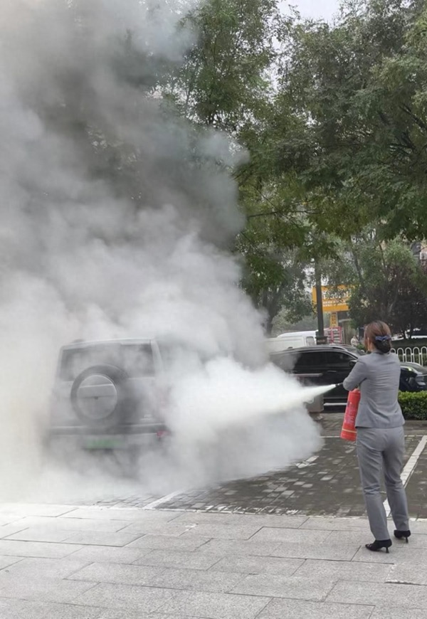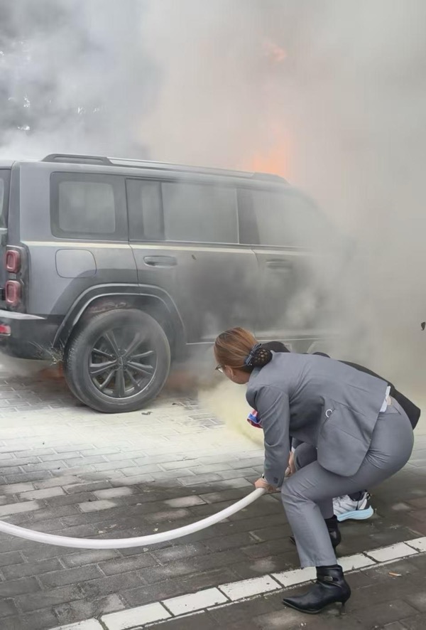 用戶發(fā)現(xiàn)是自己的車后,猛地站起身就要往外沖。 就在這千鈞一發(fā)之際,一個清脆而堅定的聲音壓住了所有的騷動:“快拿滅火器! 打119! ”