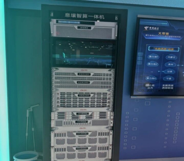 圖為PT展中國電信展臺展出的息壤智算一體機